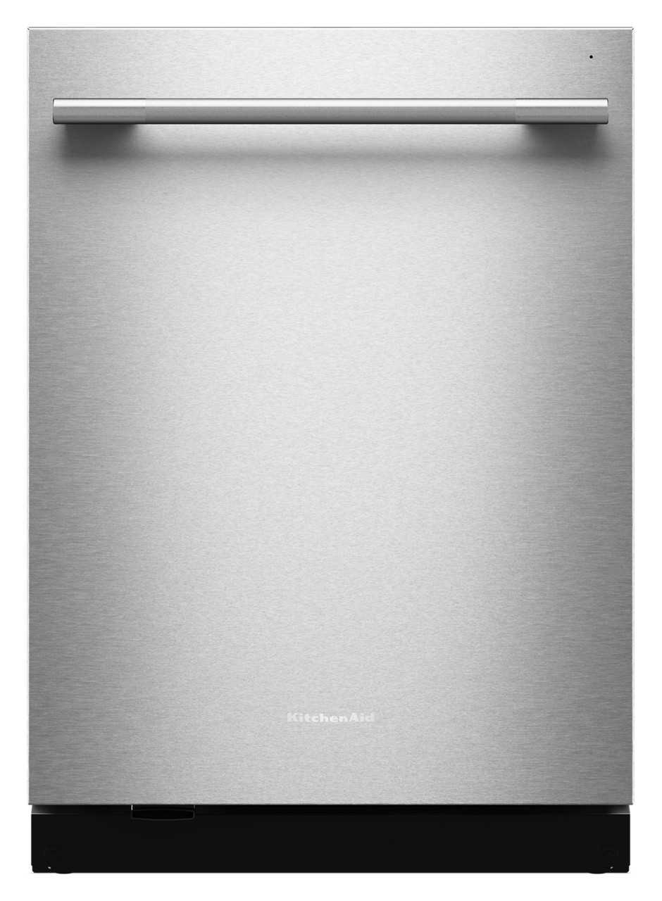 Say hello to the only way to dish. This Top Control Dishwasher with a Towel Bar Handle has 50+ Total Wash Jets across 4 wash arms that offer targeted cleaning across the entire 7.25 cu.ft. MaxTub Largest Dishwasher Tub. 360° Max Jets™ Third Rack uses 360° wash jets to clean glasses, mugs and bowls. Advanced ProDry™ System serves up KitchenAid brand's driest dry. True Self-Cleaning Filtration eliminates manual filter cleaning by continuously circulating clean water during wash and rinse cycles.Read More