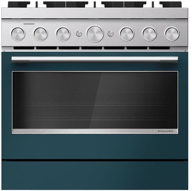 Expand your skills with a 36-inch KitchenAid® commercial style range with 6 burners. This dual fuel range combines a gas cooktop with the even baking of an electric oven. Two 20,000 BTU ultra power™ dual-flame burners offer the power and precision to successfully sear, simmer, stir-fry and sauté.Read More
