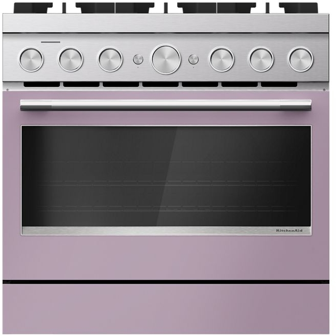 Expand your skills with a 36-inch KitchenAid® commercial style range with 6 burners. This dual fuel range combines a gas cooktop with the even baking of an electric oven. Two 20,000 BTU ultra power™ dual-flame burners offer the power and precision to successfully sear, simmer, stir-fry and sauté.Read More
