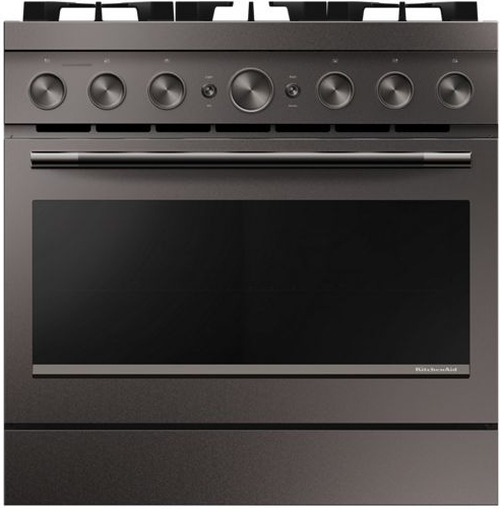 Expand your skills with a 36-inch KitchenAid® commercial style range with 6 burners. This dual fuel range combines a gas cooktop with the even baking of an electric oven. Two 20,000 BTU ultra power™ dual-flame burners offer the power and precision to successfully sear, simmer, stir-fry and sauté.Read More