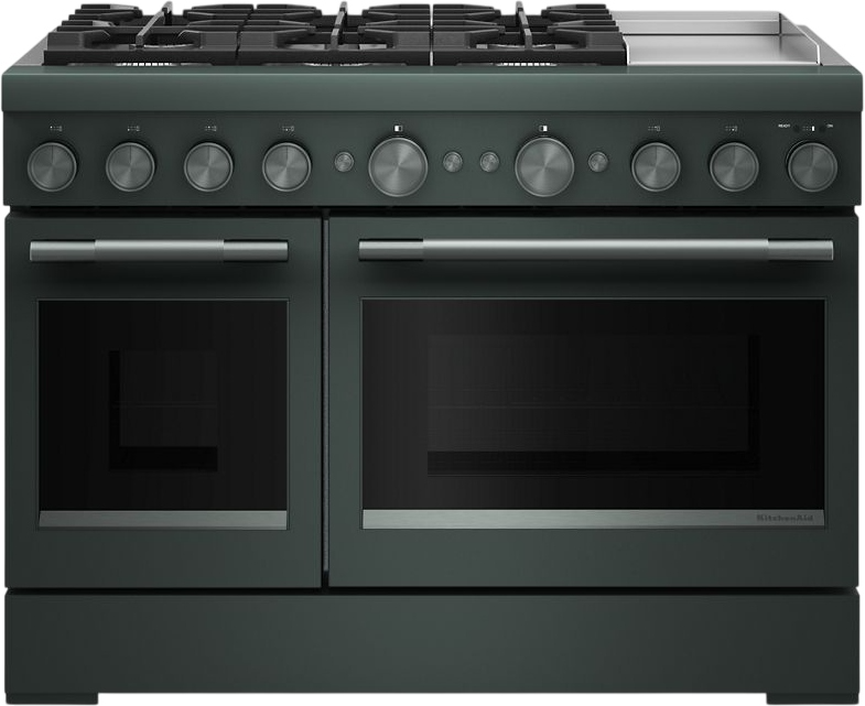 Satisfy your craving to create with a 48-inch KitchenAid® commercial-style range with chrome electric griddle. This dual fuel range combines an electric double oven with a 6-burner gas cooktop.Read More
